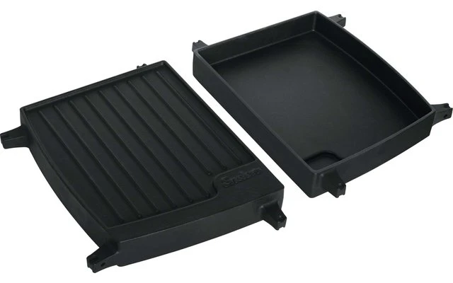 Nutzen Sie die glatte Seite für Fisch oder Geflügel. Mit der geriffelten Seite verpassen Sie dem Fleisch ein erstklassiges Branding.