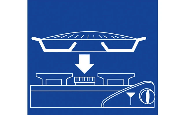 Grillplatte mit verbesserter Antihaftbeschichtung für Tischkocher. Fett und Fleischsaft wird in der Wasserschale unter der Grillplatte aufgefangen. Mit Grillplattenheber für ein leichtes abnehmen der Grillplatte (auch verwendbar als Flaschenöffner).