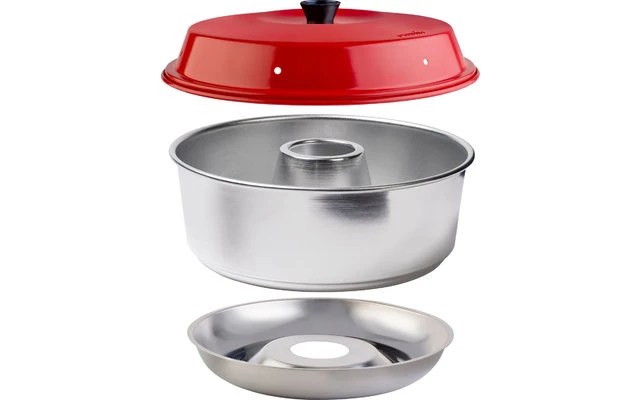 Mit 3 Liter Volumen ist die Maxiform die ideale Erweiterung zum normalen OMNIA Campingbackofen. Zusammen mit dem Unterteil und dem Deckel vom OMNIA Campingbackofen hat man einen 3-teiligen „großen“ Backofen, für 4 bis 6 Personen.